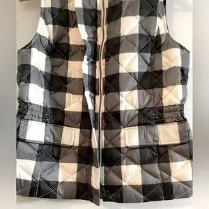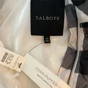 New Talbots Down Quilted Vest Black Grey White Large Buffalo Plaid Puffer XS