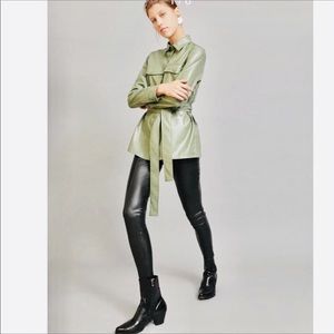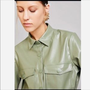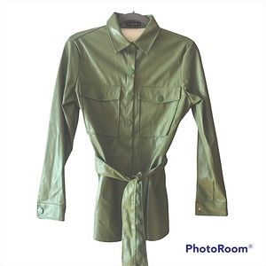 New Flap Pocket Front Belted Faux Leather Jacket/Shacket Size Small