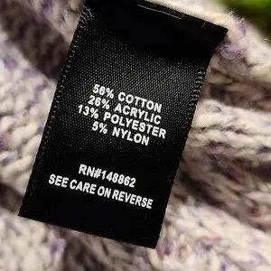 56% cotton, 26% acrylic, 13% polyester 2% nylon.