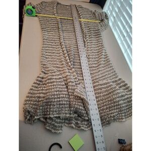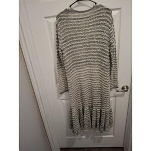 Free People Small Gray Striped Long Flare Ruffle Accent Bohemian Duster Cardigan