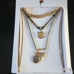Three pack of necklaces, two of which are with charms.