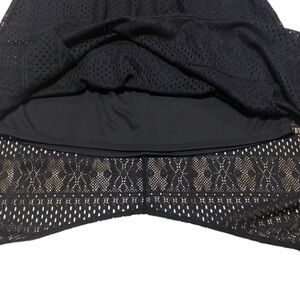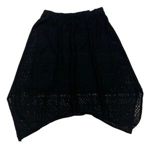 Chic black lace skirt with a handkerchief hem. Perfect for stylish outings.