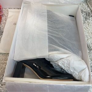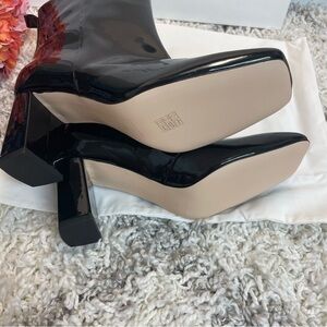 Framed by a contemporary square toe and block heel, this patent-leather bootie will elevate your look with modern sophistication and flawless style.