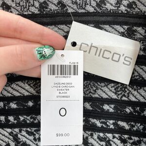 Chico's Dazzling Decoration Lyndie Cardigan Sweater Women's 0 Black Fair Isle