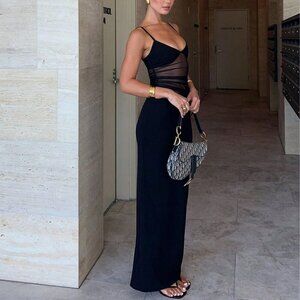 Black Sexy Women's Mesh Patchwork Camisole Dress