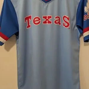 Texas Rangers Cooperstown Collection Blue and Red Sports Jersey Size Small