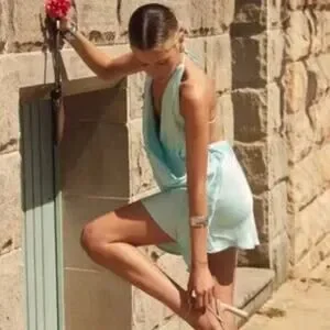SNDYS Rosita Halter Mini Dress in Fresh Mint With Stone Bead Straps NEW