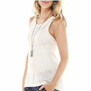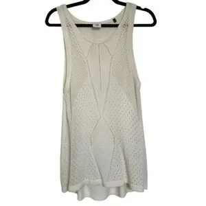 EUC; crochet knit tennis tank sweater top in a cream/white with high low hem style. Style# 5136.