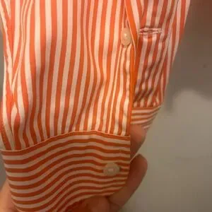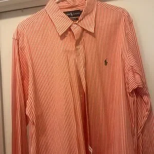 Ralph Lauren Men's Orange and White Striped Shirt