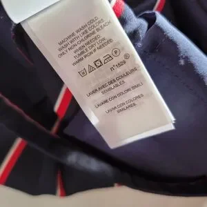 Stylish navy pants with red and white stripes. Perfect for any occasion. Like new condition. Size 4. These are ankle length.