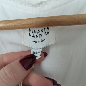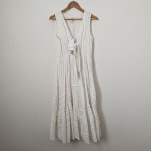 NWT Hemant & Nandita white lace Juhi cotton bohemian tie cutout slit midi dress