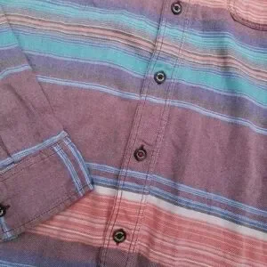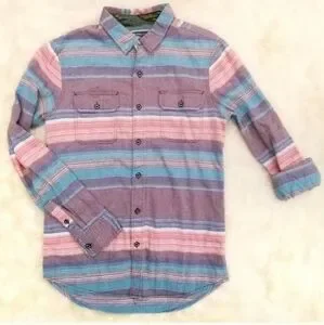 •SOLD• Modern Amusements multi color stripe button down shirt S blue
