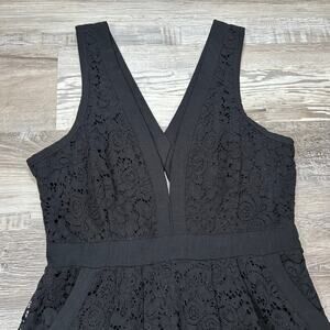 Free People Black Lace Mini Dress with Cutout Back and Sleeveless Fit Small