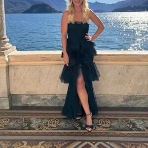 Michael Costello X REVOLVE Alai gown in Black. Strapless tier black gown.