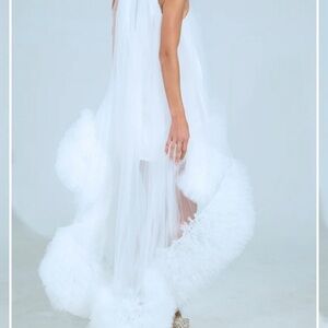 This elegant white sleeveless dress is perfect for any special occasion. Its flowing design offers a chic and sophisticated look.