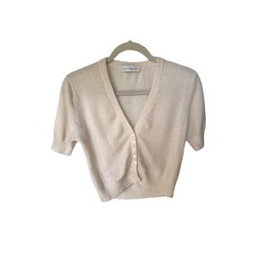 Elegant cream knit sweater. Ideal for layering. Missing bottom button. Otherwise excellent condition. Retail $425 Yours for $55! Sz xs