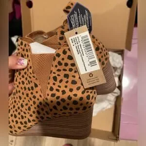 TOMS Kelsey Ankle Boot - Color: Brown Sugar Tiny Cheetah Printed Suede - NWT 9