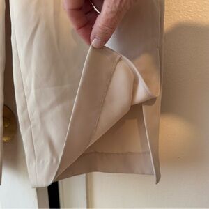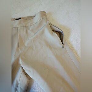 Theory pull on trouser pants. Amazing! Business casual, so dress up or down. Slit detail upright both legs. Full length pant. Neutral color. Pair with sweater, blouse, blazer…options are endless. High end look and feel. Size 00 but please see measurements.