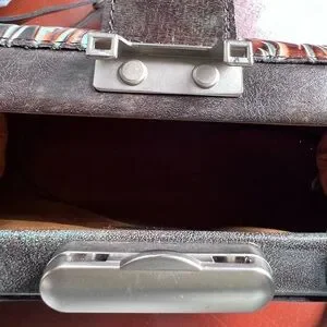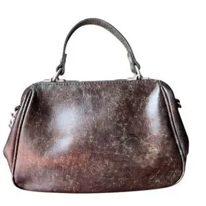 Exterior: top handle, structured frame, protective metal feet, burned edge finish Latch closure with leather pull tal Removable/adjustable crossbody strap Signature antique silver hardware, heavy handcratted stitching Approx: