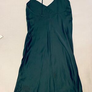 ZARA green jewel tone lace midi high neck holiday party dress small