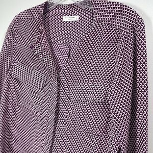 Equipment Femme Lynn geo print purple button down 100% silk top size xs.