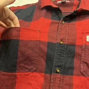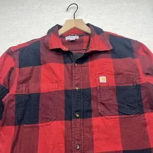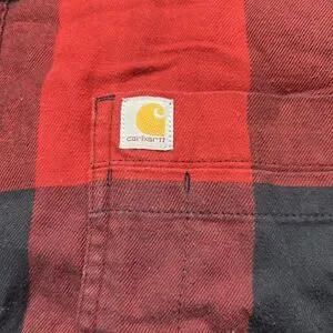 Carhartt Flannel Fleece-Lined Jacket Red Checkered Plaid Padded L Large Outdoors