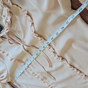 Elegant cream top with ruffled details that adds interest to your outfit. This top go easily from the office to the afternoon. Pair with ballet flats or sneakers for a go to put together look.