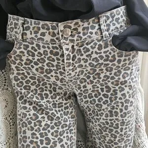Stylish leopard print skinny pants. Comfortable fit. Perfect for casual outings. small slit at hem as part of the style!