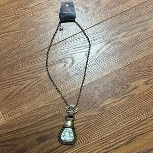 Statement Paparazzi necklace featuring an antique brass chain with a teardrop-shaped white marbled stone pendant. The veined detailing and textured brass setting give it a rustic boho vibe. Adjustable clasp closure.