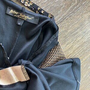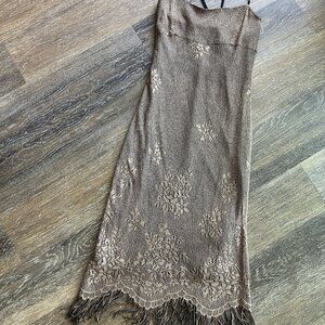 Betsey Johnson Evening Gold Metallic Floral Size M Fringe Dress