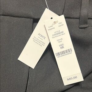 Elegant black boot cut pants. Sleek design. Perfect for any occasion.