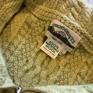 Aran Crafts Cardigan Womens L Green Merino Wool Cable Knit Fisherman Sweater