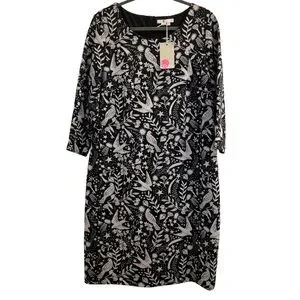 Boden Womens Size US 14 Winifred Dress Black Mystic Woodland Jacquard Bird Print