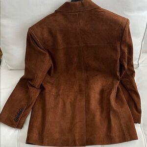 Stylish brown leather jacket. Features a classic design. Perfect for any occasion.