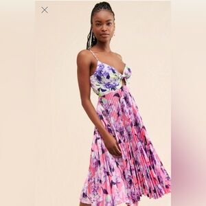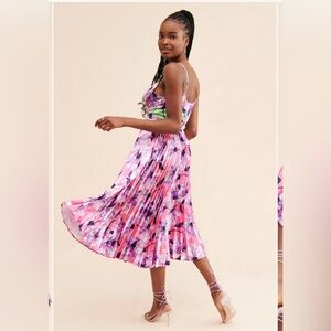 Midi Dress with pleated skirt size S,wedding guest, resortwear adjustable straps
