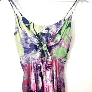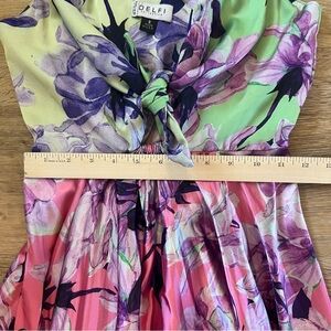 Embrace elegance with this stunning floral dress. Featuring a vibrant mix of pink and green hues, it's perfect for any occasion.