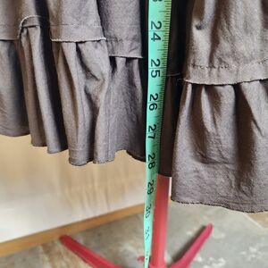 This elegant tiered maxi skirt offers a flowy silhouette perfect for any occasion. The rich chocolate brown color adds a touch of sophistication to your wardrobe.