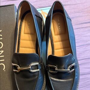 Chic black loafers with a sleek silver accent. Ideal for everyday elegance.