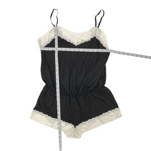 Venus White Lace Trim Black Negligee Romper Size XL Women’s