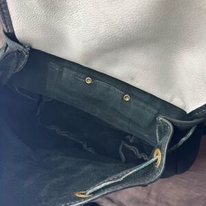 Vintage Black/Green Leather Saddlebag Backpack with Brass Clasps