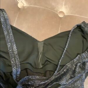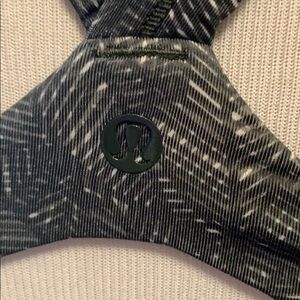 Beautiful Lululemon wrap it up top that features dark green fabric with white accents, padding that can be removed, super cute wrap style, and a racer back back. Bottom hangs a little looser than the top for a really flattering fit. Gently used but still in great condition.