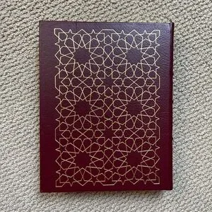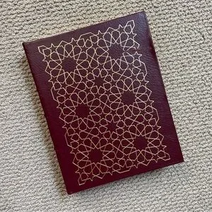 Don Quixote hardback book. Collector’s edition from The Easton Press. Bound in brown leather with beautiful gold detail and bound page ribbon. 682 pages of content. Good condition - only noted flaws are a scratch and dent on front cover and scratch in gold on side pages. Will be beautiful on a bookshelf. Comes from a smoke-free home.