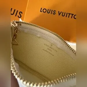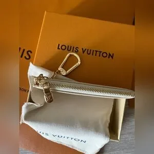 The Key Pouch is a playful yet practical accessory that can carry coins, cards, folded bills and other small items, in addition to keys. Secured with an LV-engraved zip, it can be hooked onto the D-ring inside most Louis Vuitton bags, or used as a bag or belt charm.