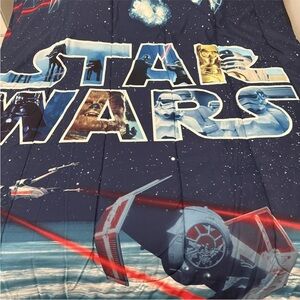 Dynamic Star Wars comforter with space scene. Features iconic ships and bold logo. Perfect for enthusiasts. New without tags. Never used.
