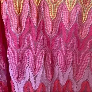 Eye-catching maxi dress with a lively pattern. Features bright pink and yellow tones. Ideal for warm weather.
