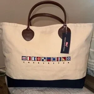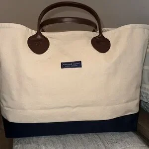 NWT, Vineyard Vines gorgeous large canvas tote bag. Cute flags detail, logo on leather handles. Inside roomy with zip pocket. Brand New! A little wrinkly from being packed up. Perfect for Fall road trips, vacays .