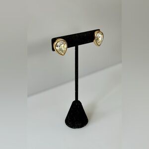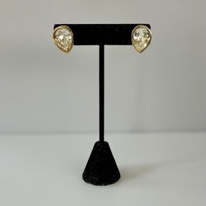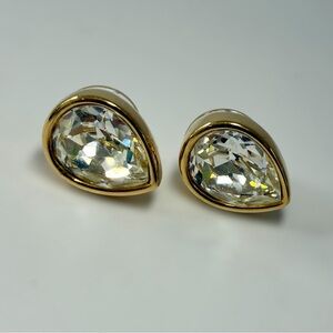 Vintage Swarovski Signed S.A.L Teardrop Crystal Gold-Tone Stud Earrings
