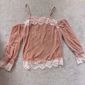 This elegant women's top features a delicate lace trim and a soft blush pink color, perfect for any occasion. The stylish design offers a comfortable fit with a touch of sophistication.