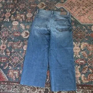 Elevate your wardrobe with these classic blue women's jeans. Perfect for any occasion, these jeans offer both style and comfort. Cropped these myself and wore one time- raw edge and inseam of 26.6in