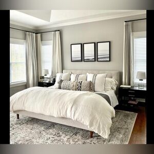 Elegant Rivera Stripe Curtains with blackout lining. Gray striped which is a color no longer available. This posting is for two curtains 50x84 each. These curtains are very heavy because of the blackout lining. They are 10lbs so additional shipping will be required.
